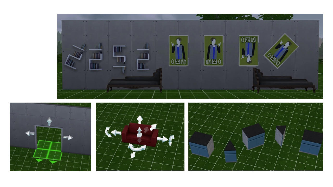 O primeiro conceito exibe possibilidades que mudariam completamente a disposição dos objetos, podendo rotacionar objetos de paredes, e utilizar um modo de espelhamento para todos os objetos. Também seria uma possibilidade usar o modo puxar e empurrar em sofás e em aberturas de parede. Uma coisa que seria incrível se os produtores tentassem implementar no jogo, são mini bancadas triangulares para dar continuidade em uma linhagem na diagonal, sem cortar a ligação com bancadas dentro das linhas retas. Todas as adições seriam muito bem vindas.