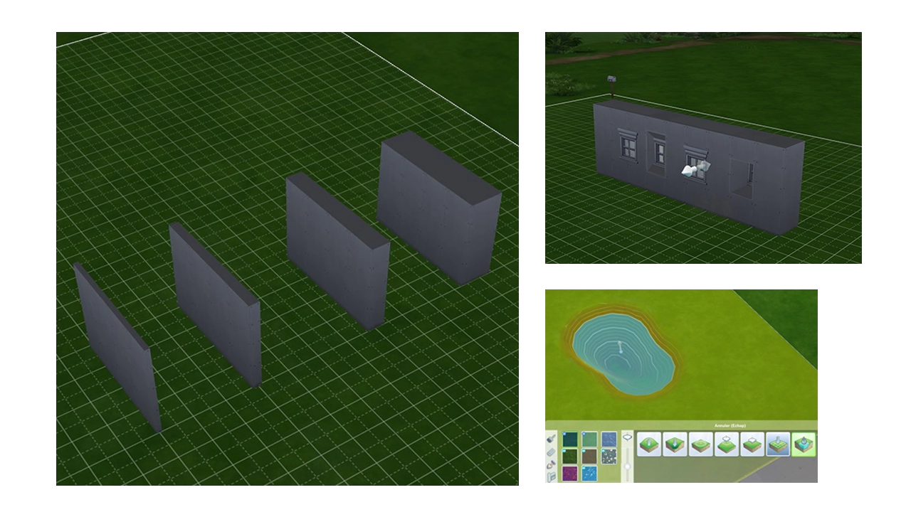 Observando a padronização de paredes, por quê não conceituar diferenças? Essa foi a ideia de uma ferramenta que adiciona espessura nas paredes comuns do jogo. Ao lado, um exemplo de como as janelas teriam interação de profundidade com as paredes mais grossas.