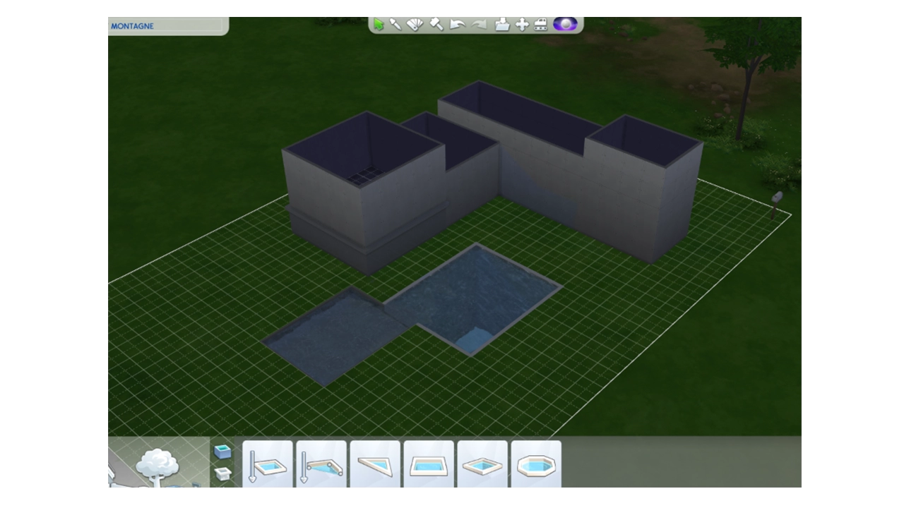 Por ultimo, uma adição que seria muito querida por todos os simmers construtores, essa é a opção de unir cômodos com fundação aos sem fundação; além de diferentes tamanhos de parede unidos, e no mesmo nível de andar. Esse conceito nos mostra que o The Sims 4 possui limitações na disposição de cômodos, mas que não é impossível liberar essas possibilidades. Basta lembrarmos que no lançamento, o jogo nos limitava a construir apenas um nível de fundação por lote, e por meio de atualização, esse limite foi quebrado. Hoje podemos colocar diferentes níveis de fundação á vontade, desde que os cômodos estejam separados. Note que a possibilidade de unir fontes e piscinas também foi lembrada pelo artista.