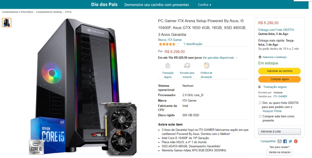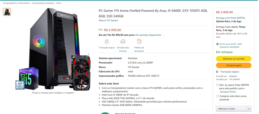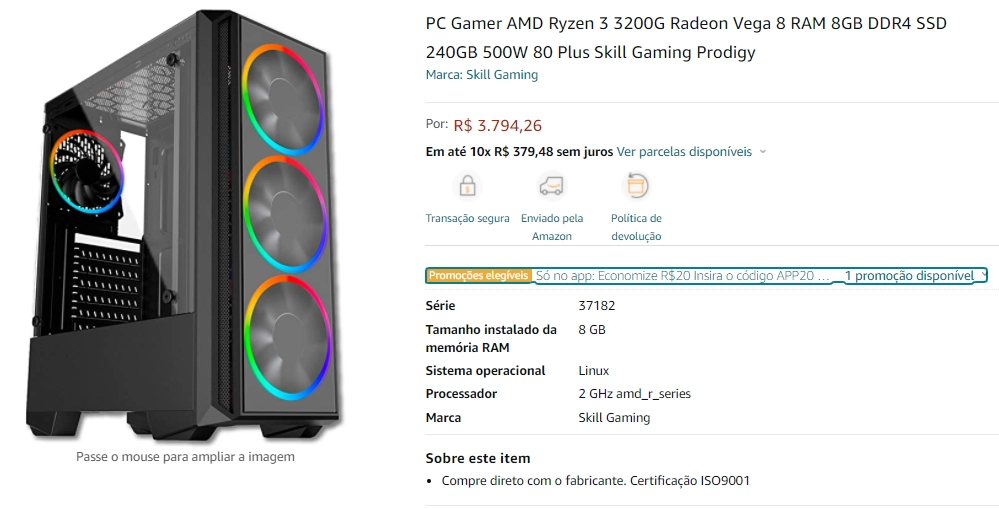 O anúncio também diz que o PC “Gamer” possui um HD de 500GB. O que posso dizer sobre isso? Até onde sei, os Pcs de hoje em dia não vem mais com HDs de 500GB, e sim HDs 1TB para cima. A menos que o HD seja SSD, daí geralmente vem 256 GB SSD, 500 GB SSD ou mais…