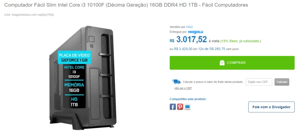 Ao procurar não encontrei nenhuma informação relevante sobre qual geração de processador o anúncio se refere, mas vi que ele tem 4 núcleos e 4 threads, o que significa muito, que provavelmente este é um processador de 3ª ou 4ª geração. Mas essa com certeza é uma informação longe de ser acessível para pessoas leigas que não entendem de informática. Estamos falando de um processador de mais de 8 anos atrás! Você acha justo comprar um Pc tão antigo como se fosse novo? Se ele der algum problema, será uma missão quase impossível encontrar alguma peça para conserto! Para vocês terem uma ideia, o i5 da geração atual possuí 6 núcleos e 12 threads.