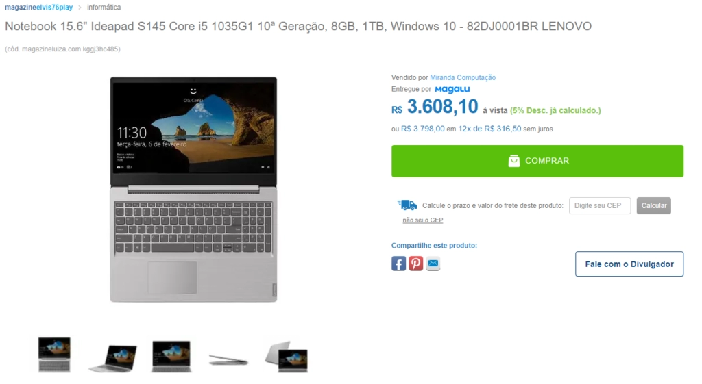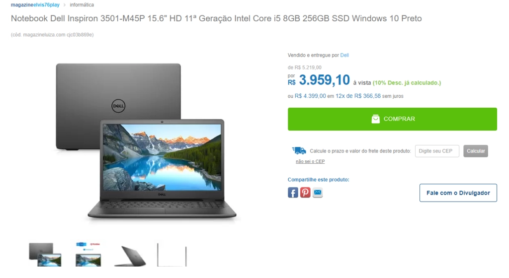 Mas vamos analisar melhor as configurações. No anúncio está dizendo que ele é um Intel Core i5 🤔 (mas ele não específica qual geração do i5 que é). Vamos ver os detalhes abaixo para ver se encontramos: