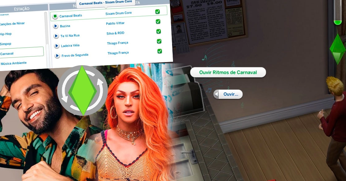 Como anunciamos hoje o Kit Moda Bloco de Carnaval, já queremos entrar de cabeça no espírito do Carnaval. Portanto, adicionamos uma nova Estação de Rádio, chamada Ritmos de Carnaval, para que seus Sims (e vocês) possam aproveitar o ritmo festivo com inspiração no carnaval brasileiro em seu aparelho de som preferido.