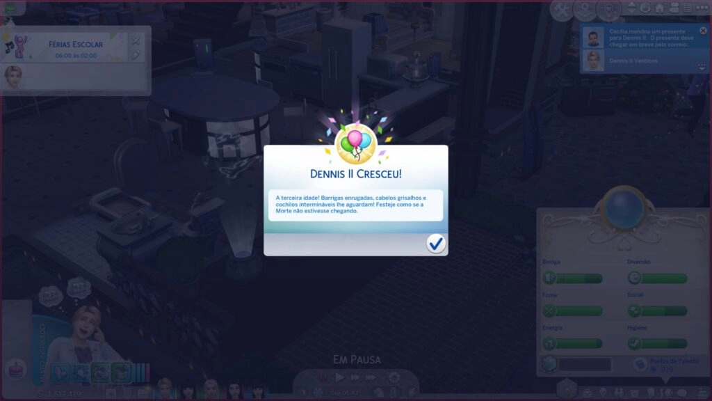Nossa seguidora @Jessicamp1979, relatou que em seu jogo o sim dela envelheceu assim que a tela de carregamento acabou. Faltando 32 dias para envelhecer, o Sim envelheceu precocemente.