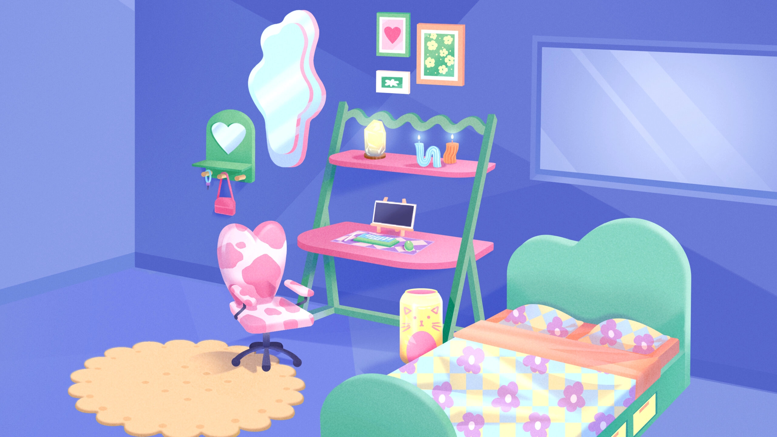 Toda decoração devia ser divertida e descontraída! Crie um quarto com um lado excêntrico e formas irregulares e simples em cores pastel encantadoras. Esta coleção disponibiliza cadeiras de coração, espelhos com formato de poças d’água e ainda mais maneiras de incorporar extravagâncias ao design do dia a dia.