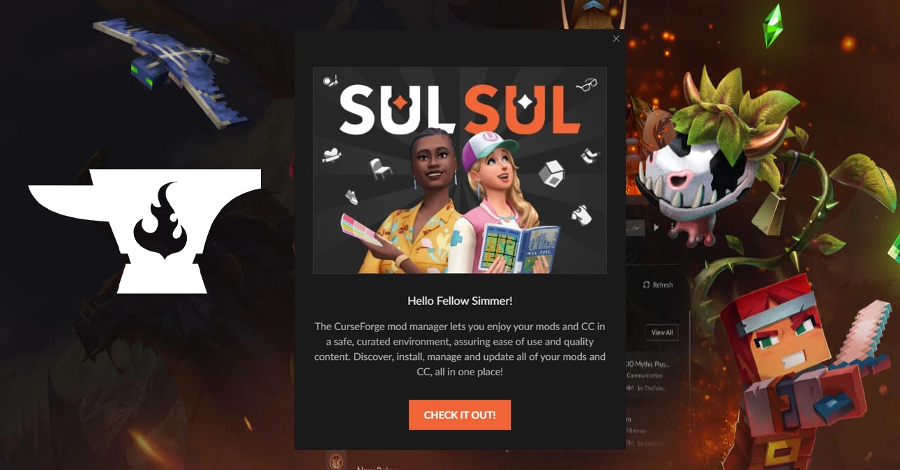 Olá Simmers! Depois de muita espera, finalmente foi lançado o Gerenciador de Mods Oficial CurseForge para The Sims 4! O CurseForge é um programa de gerenciamento de Mods usado por diversos programas. Ele foi escolhido pela Maxis para ser o gerenciador oficial do The Sims 4.