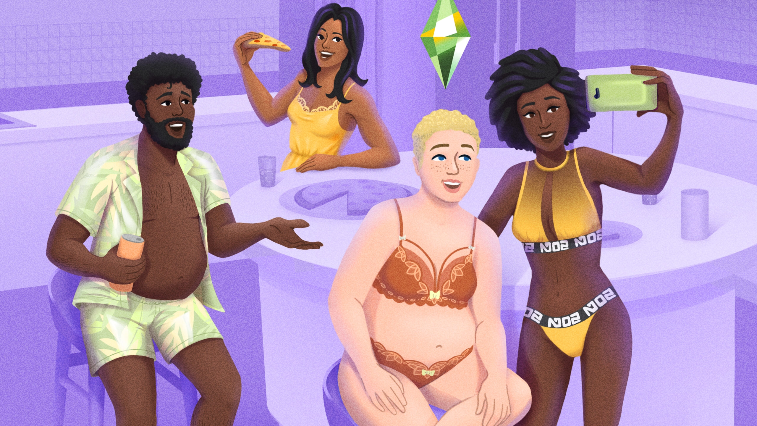 Novidades em roupas confortáveis Atualize o guarda-roupa íntimo dos seus Sims com peças que seguem as tendências atuais de materiais, cores e padrões. Bodies rendados, uma variedade de estilos de roupas de baixo e boxers com estampas divertidas transformarão o quarto de seus Sims em uma passarela.