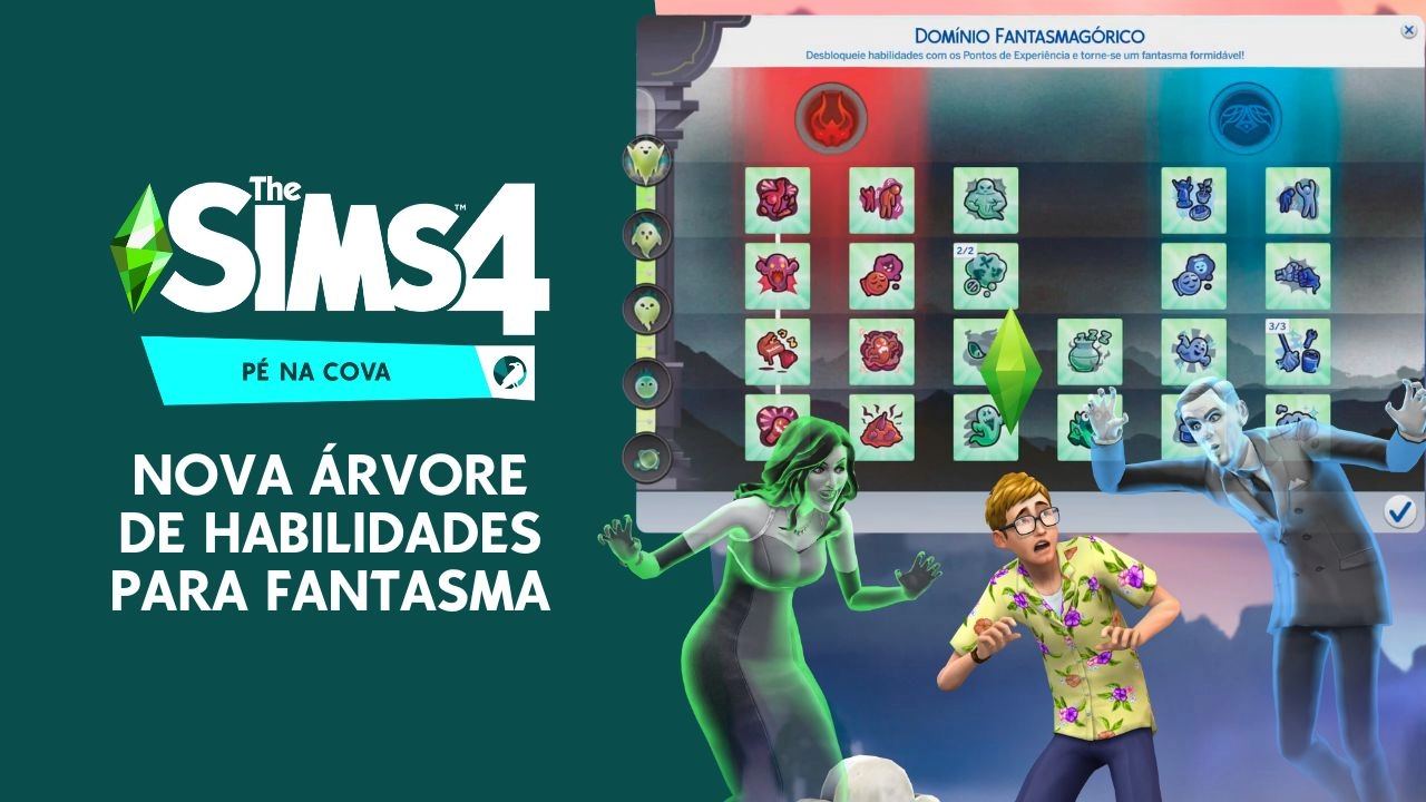 A nova Árvore de Habilidades Fantasma serão recursos exclusivos que chegarão com a expansão The Sims 4 Pé na Cova. Com seu lançamento previsto para 31 de outubro de 2024!