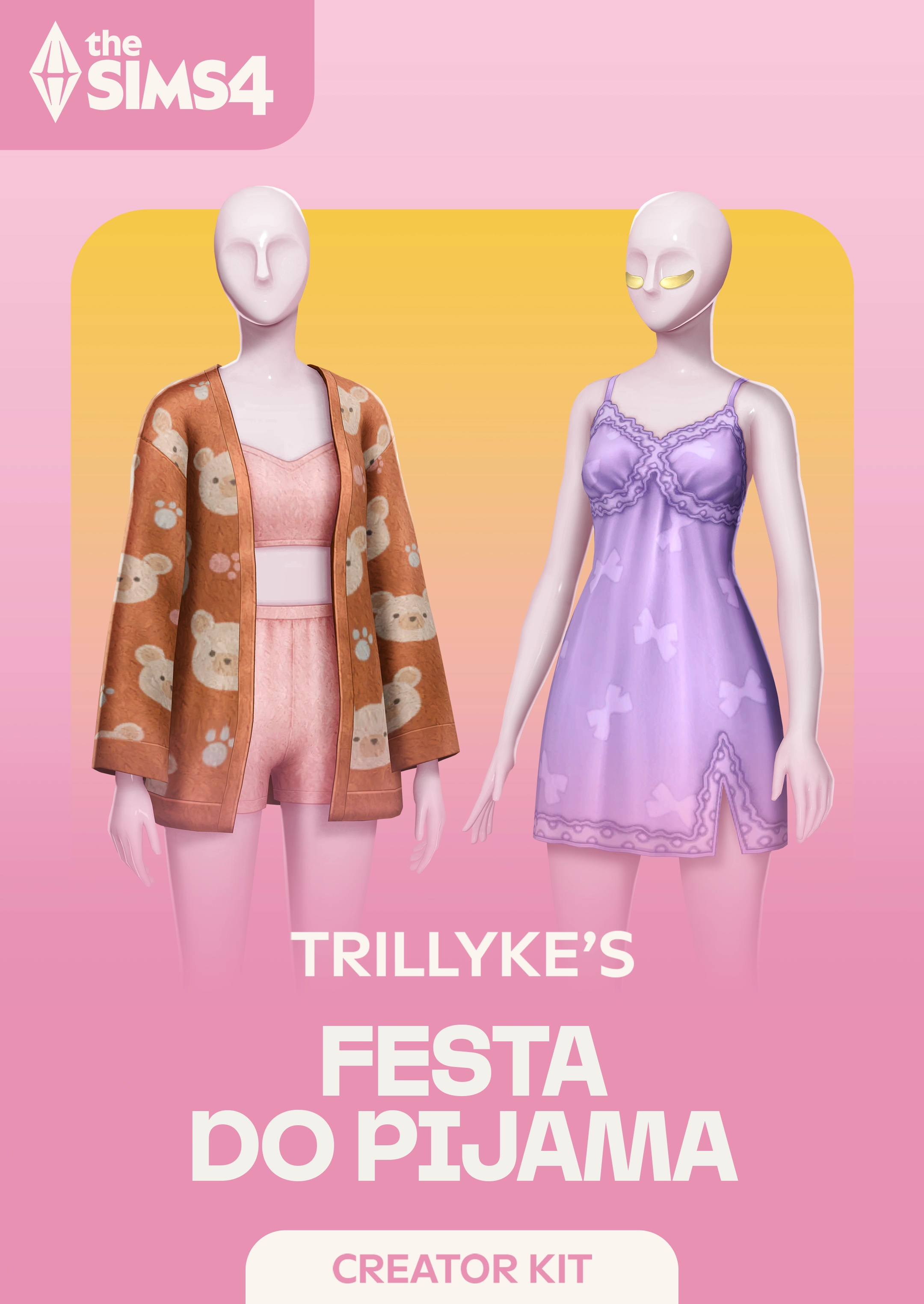 De pijamas de seda a meias fofinhas, @Trillyke criou uma coleção super confortável de itens para dormir no The Sims 4 Creator Kit – Festa do Pijama 💖. Prepare-se para ter um sono de beleza entre seus sims, com máscaras de olhos brilhantes e adesivos para acne em formato de estrela e muito mais!