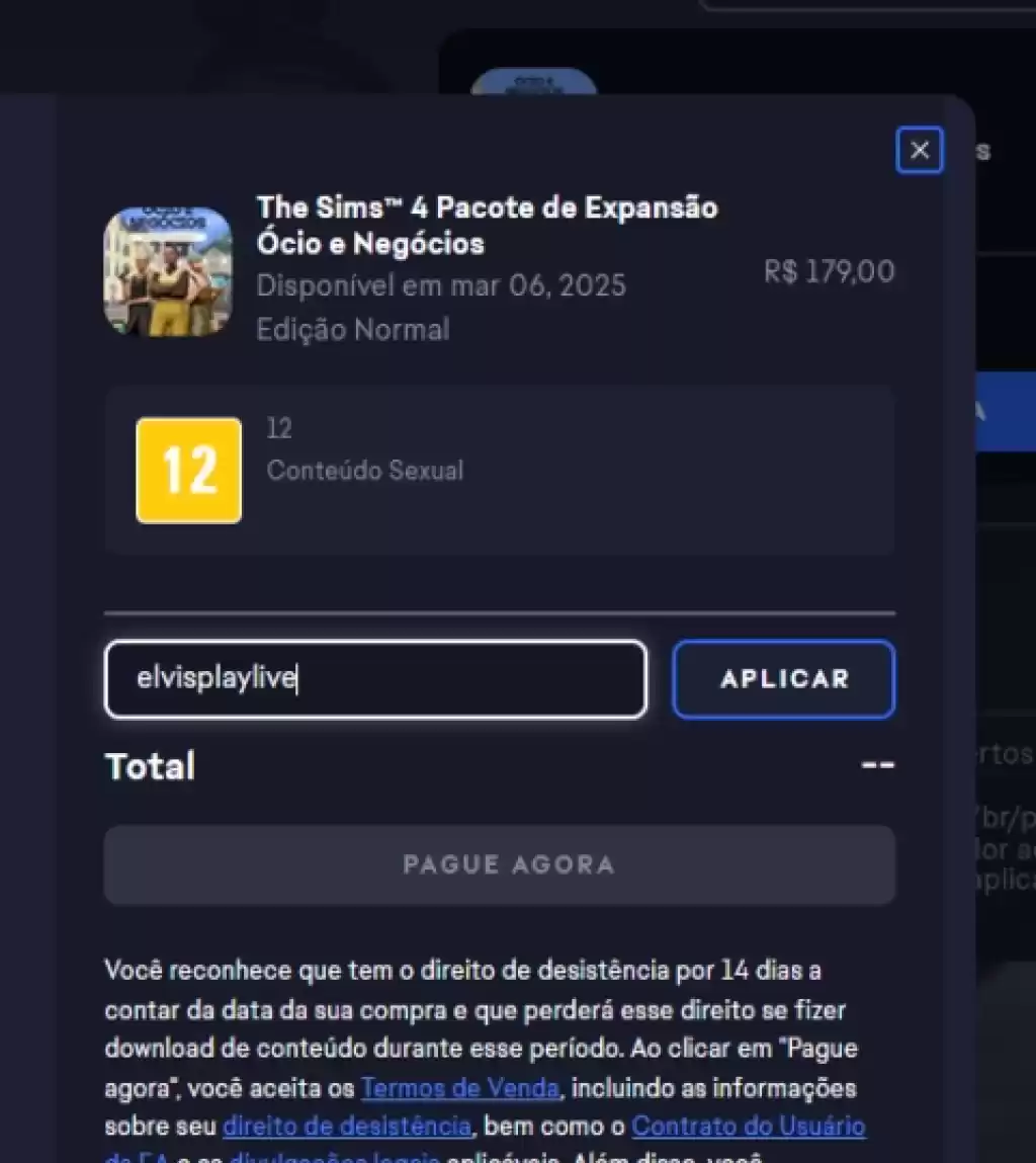 💡 Apoie o site Cidade dos Sims! Se você for comprar o The Sims 4 Ócio e Negócios, considere usar nosso código na EA App: elvisplaylive