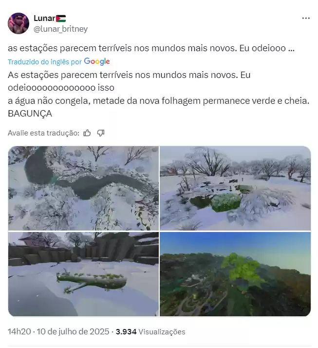 Em comparação, mundos antigos como Windenburg e Willow Creek apresentavam efeitos sazonais completos, com árvores que perdiam folhas, água congelada e neve que modificava a paisagem. Nos lançamentos recentes, essa atenção aos detalhes parece ter diminuído.