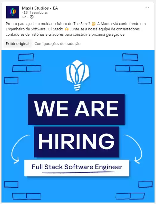 A Maxis abriu uma vaga para engenheiro web em seus estúdios no Canadá. O foco do recrutamento é o desenvolvimento de ferramentas online, integrações web e funcionalidades tecnológicas para The Sims. Segundo o anúncio, a vaga está ligada diretamente ao futuro da franquia, com destaque ao Project Rene, chamado internamente de Novo The Sims. O trabalho envolve criar recursos para conectar jogadores, aprimorar a experiência da comunidade e trazer avanços tecnológicos ao próximo capítulo do jogo, conforme detalhado pela própria Maxis.