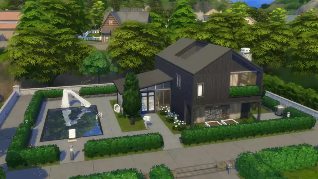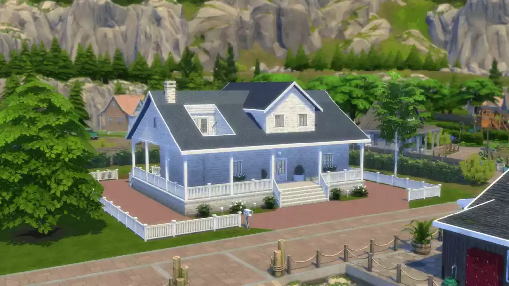 “Eu queria que todos os lotes gerassem uma sensação de recepção carinhosa e que fossem divertidos de usar, independentemente de o estilo de alguns lotes ser um pouco mais rústico ou, de outros, mais moderno,” diz Axiisims. “Duas das casas que eu construí estavam prontas para morar. Mas, se eu for recomendar algo para o lote desocupado, começaria a história com um jovem casal que está começando na vida. Depois de economizarem dinheiro, eles poderiam se mudar para a casa moderna que eu fiz no Vale do Cristal. Quando estivessem com tudo pronto, até pensariam em ter um filho. Esse lote é perfeito para uma família pequena com um estilo de vida confortável.”