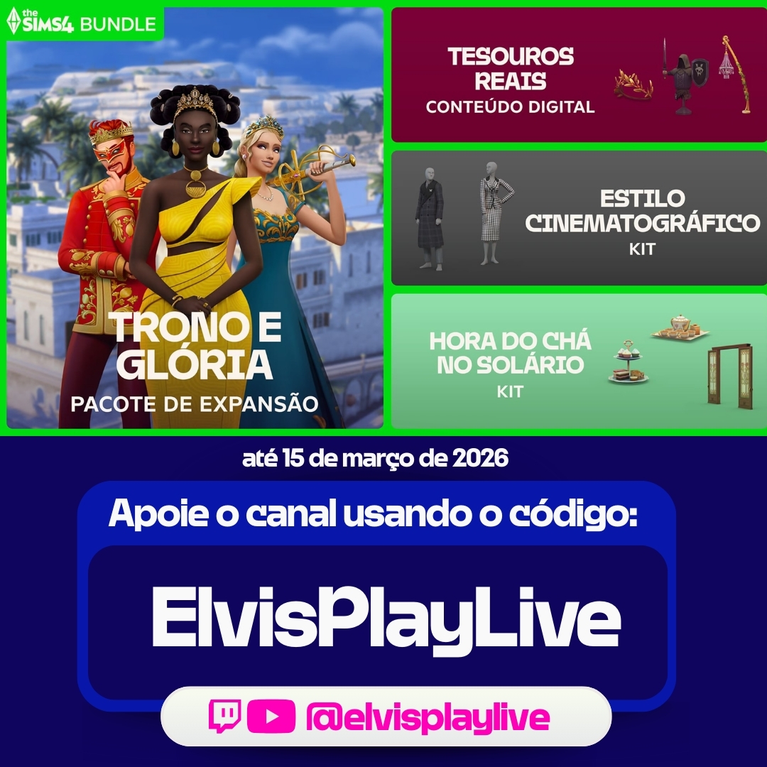 💡 Apoie o site Cidade dos Sims! Se você for comprar o The Sims 4 Trono e Glória – Bundle Grandioso, considere usar nosso código na EA App: elvisplaylive