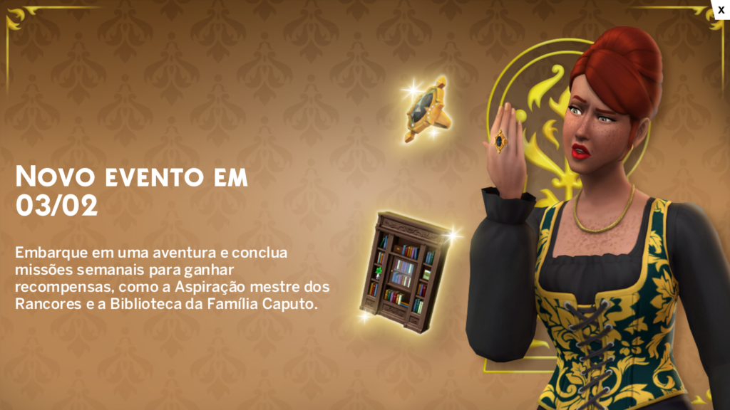Entre os prêmios mencionados estão a Aspiração Mestre dos Rancores e a Biblioteca da Família Caputo, uma nova estante que adiciona um charme extra à decoração da casa do seu Sim.