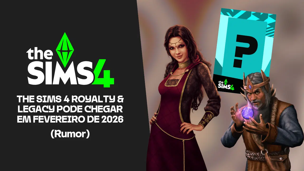 De acordo com novos rumores, The Sims 4: Royalty & Legacy (The Sims 4: Legado e Realeza) pode sair em fevereiro de 2026, que é mês que vem. A informação foi atribuída ao usuário do X (ex-Twitter) @lunar_britney, que teria postado algo nesse clima: