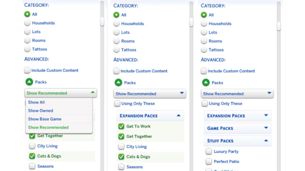 - Todos os objetos de bagunça do pacote Itens de Cozinha agora estão visíveis ao ordenar com filtro de pacotes e procurar na categoria Decorações Diversas, na visão de cômodos do Modo Construção.