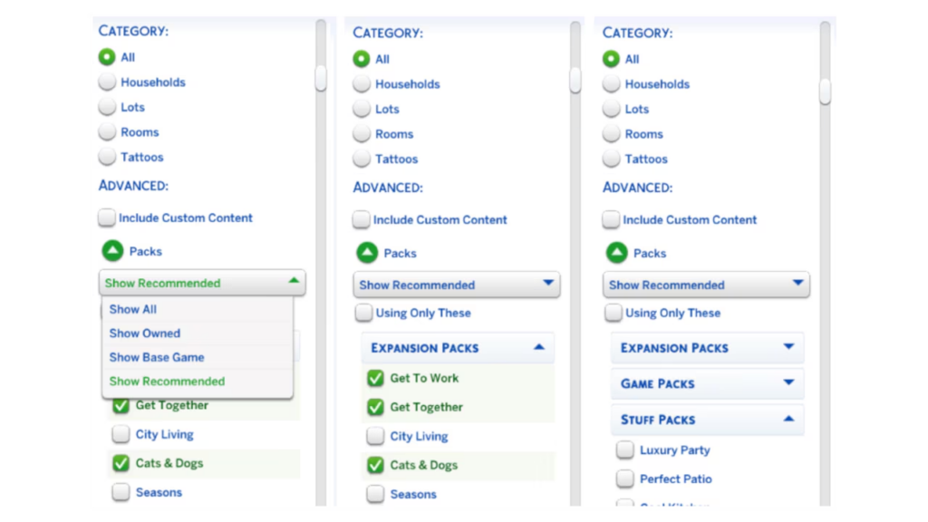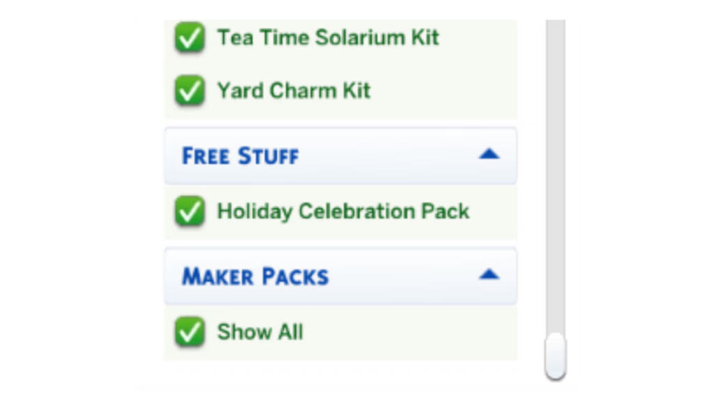 - Todos os objetos de bagunça do pacote Itens de Cozinha agora estão visíveis ao ordenar com filtro de pacotes e procurar na categoria Decorações Diversas, na visão de cômodos do Modo Construção.