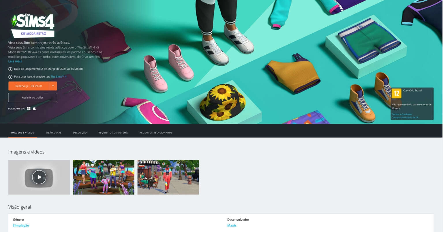 Vista seus Sims com trajes retrôs atléticos com o The Sims™ 4 Kit Moda Retrô*! Reviva as cores nostálgicas, os padrões ousados e os modelos populares com todos estes novos…